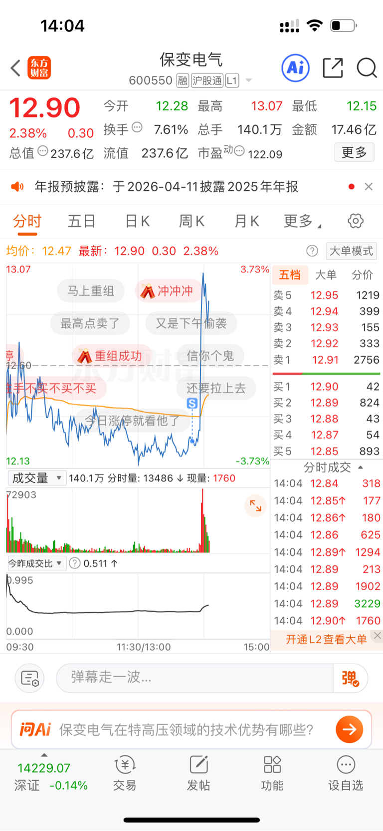$保变电气(SH600550)$ 十个点走了,