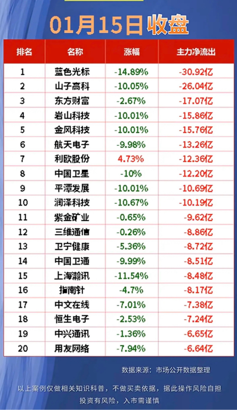 01月15日净流入前20名股票榜,快来一睹为快!