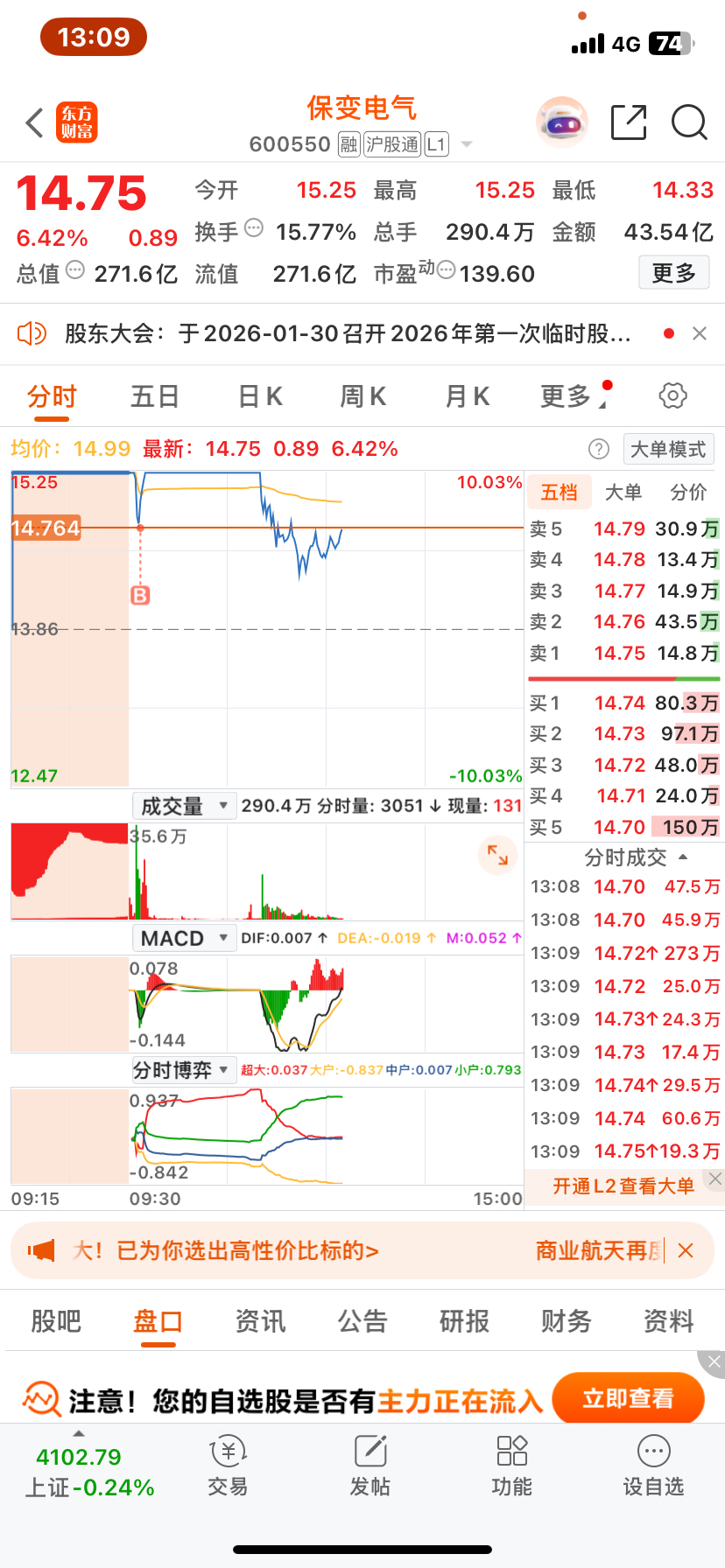 $保变电气(SH600550)$ 还以为今天买到宝了呢!