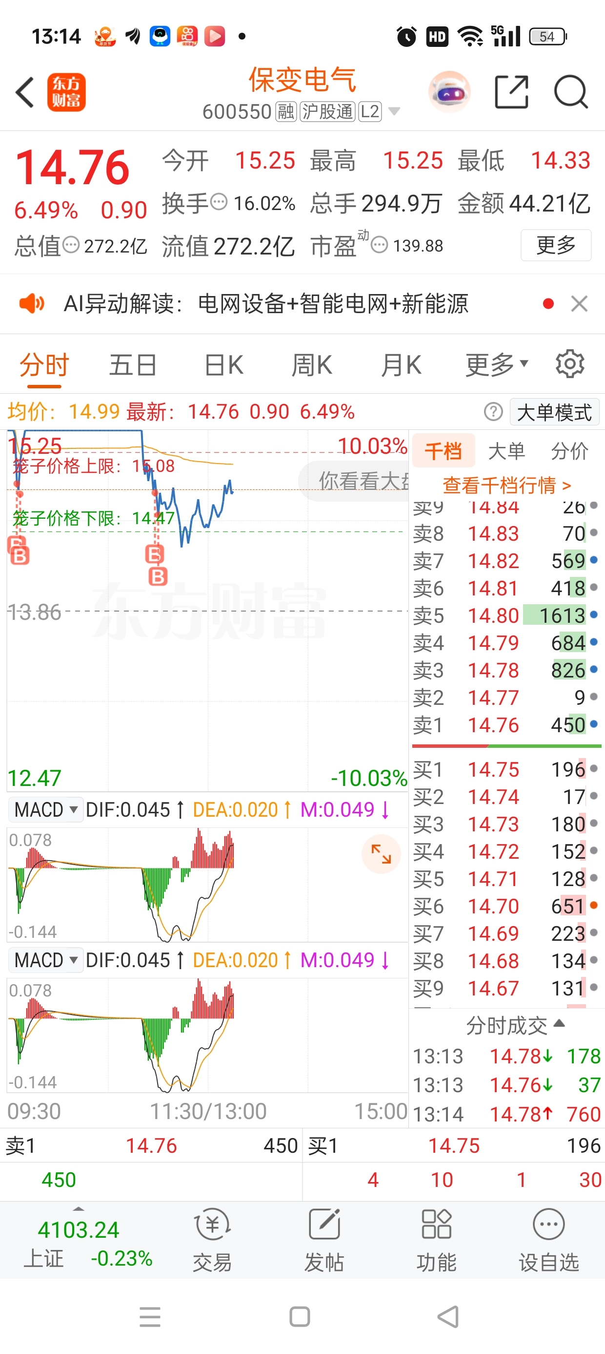 $保变电气(SH600550)$ 电力设备直接切龙头,龙头都不行,那其他的也不可能行了。扬电,双杰。切保变