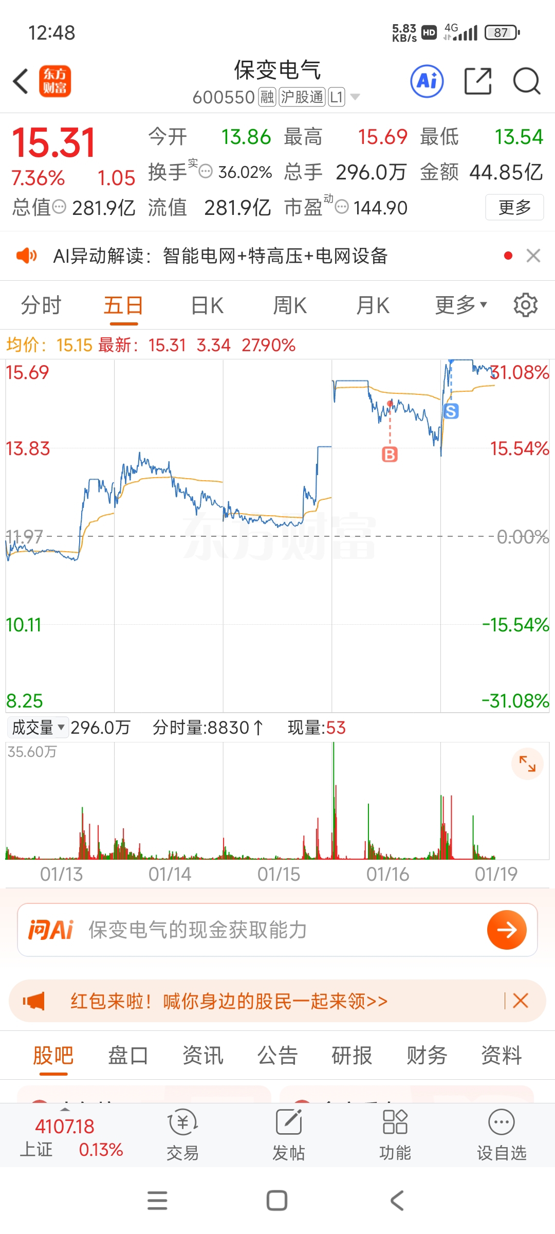 $保变电气(SH600550)$ 犹豫要不要接回来,这主力很坏