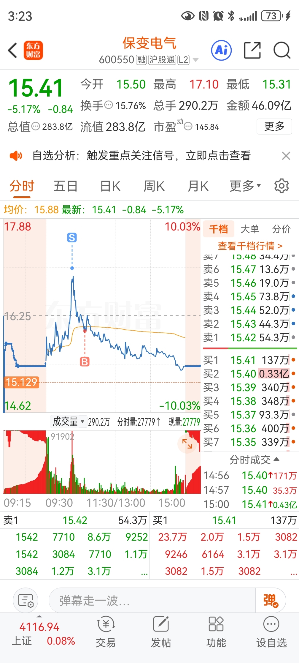 $保变电气(SH600550)$ 我真是手贱!!!明天估计又是大面一碗!!!