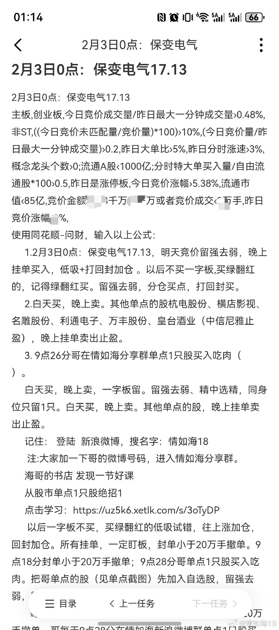 2月3日0点:1.保变电气17.13,9点18分封单大于20万手不撤单。