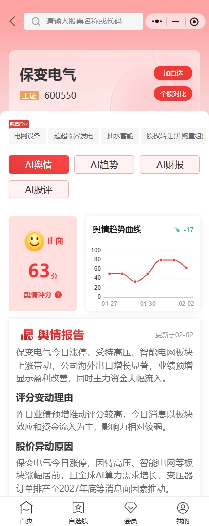 最近感觉市场跌得比较多,但$保变电气(SH600550)$ 整体还不错,舆情宝给出的最新分析也比较正面,在股价趋势分析中给出了坚定持仓的操作参考。10月的时候靠希财舆情宝的分析提示,开始入手,买了两次,前两周17的时候出掉过一点,剩下的完全能安心继续拿着。另外,还直接盘点了近期个股相关的一些利好信息,也不用自己抓瞎。