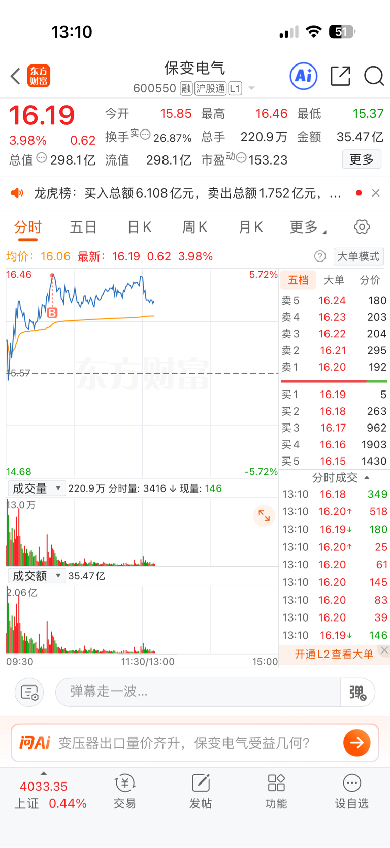 $保变电气(SH600550)$ 我错了明天给我机会出。