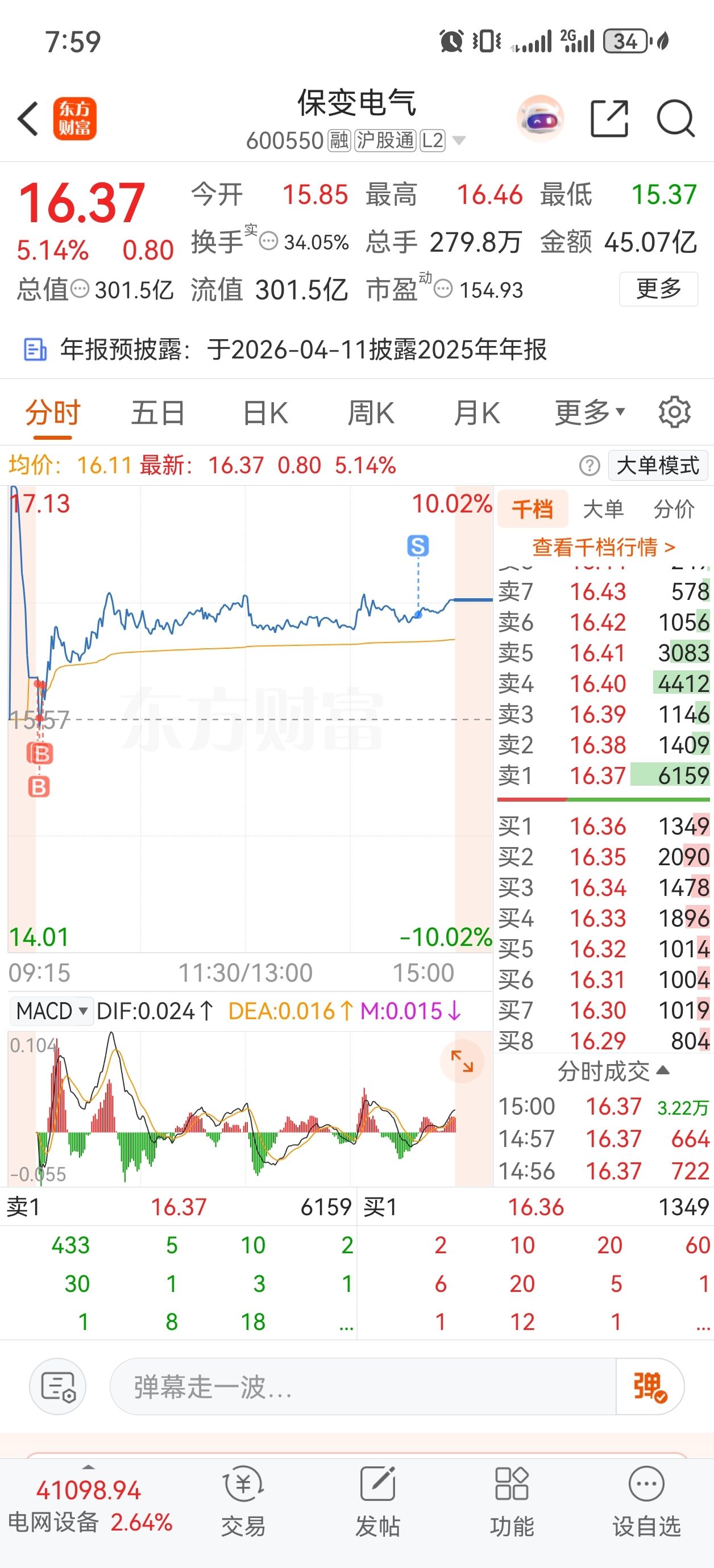 $保变电气(SH600550)$ 尾盘感觉有点不对劲,出一半,锁一下利润。