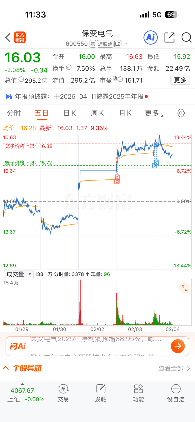 $保变电气(SH600550)$ 一点不敢格局,熊市