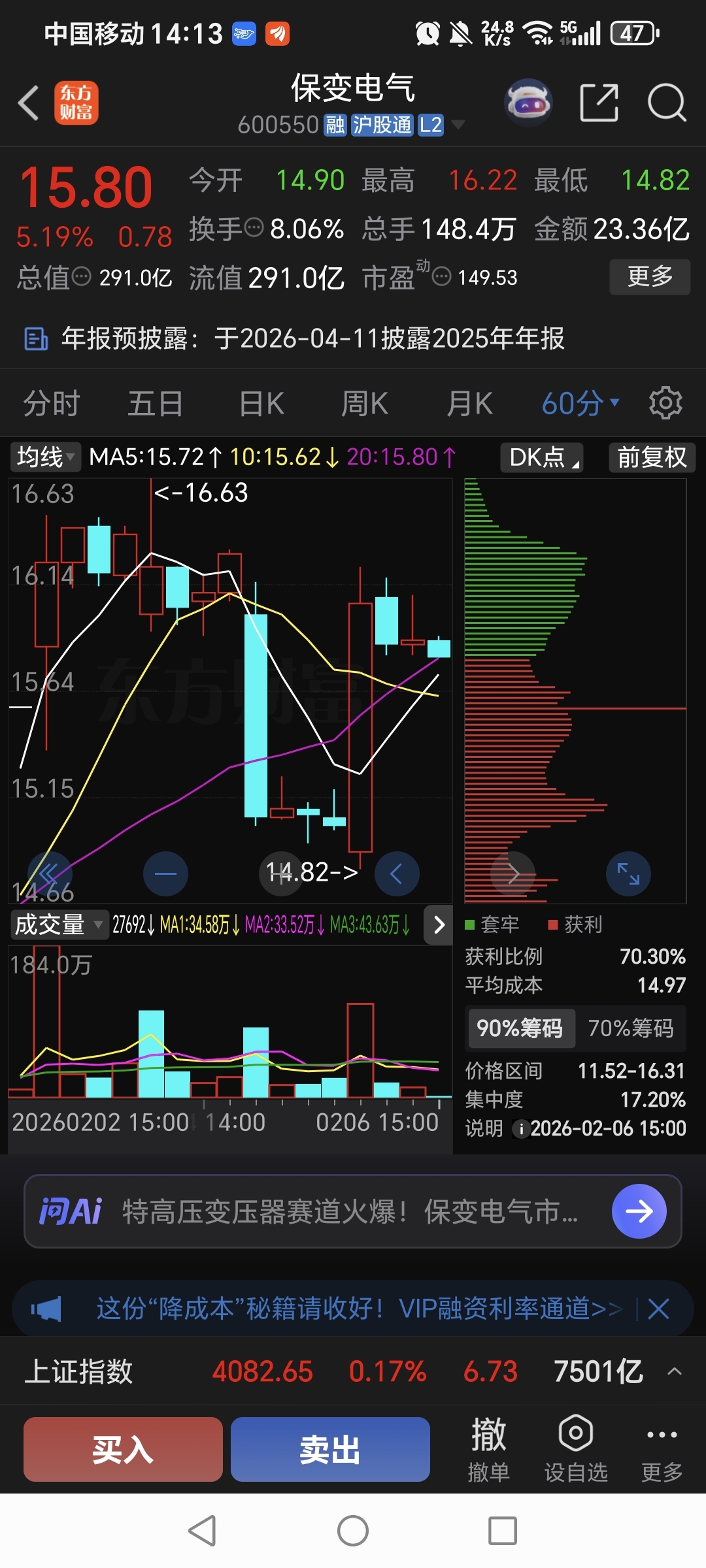 $保变电气(SH600550)$ 这样的成交量存在什么阴谋
