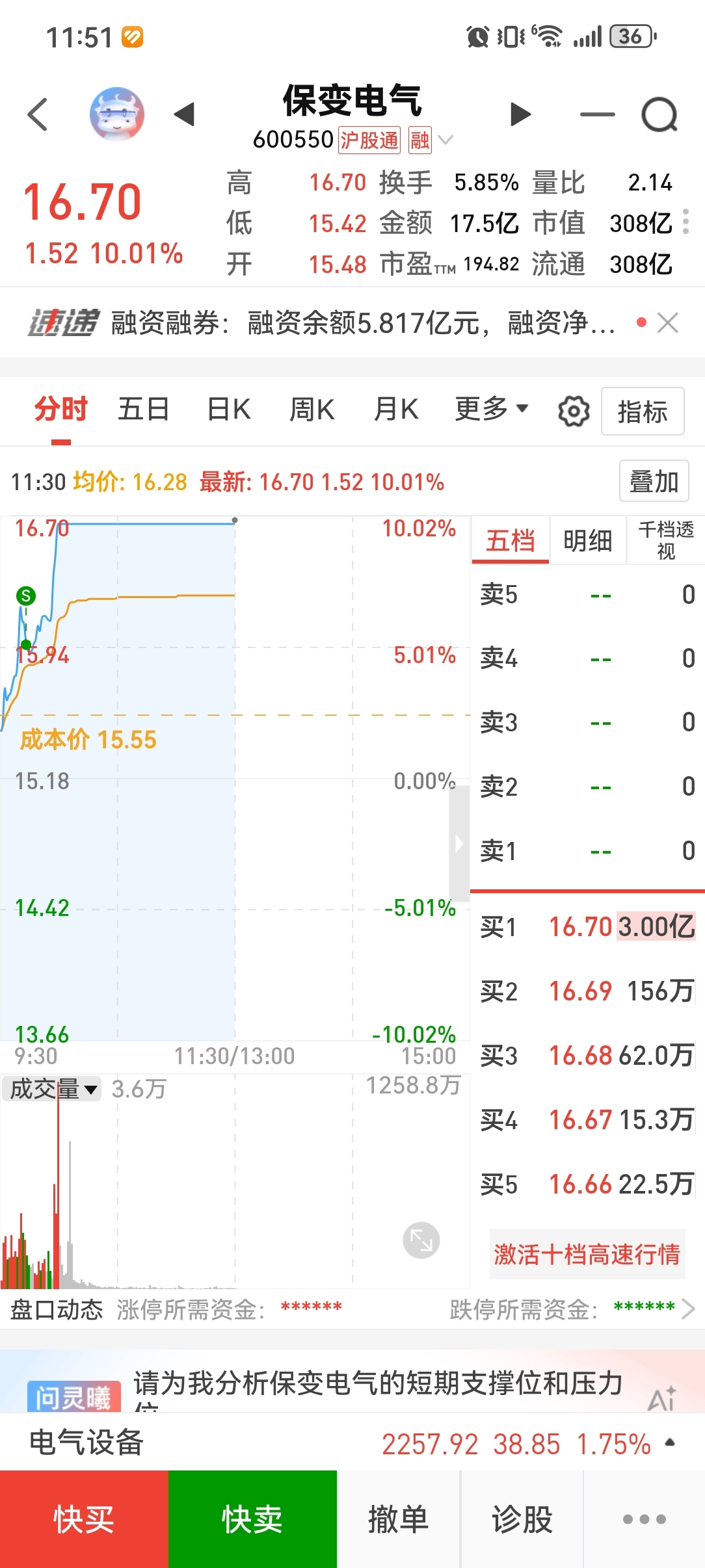 $保变电气(SH600550)$ 卖飞就卖飞,严格执行自己的模式。
