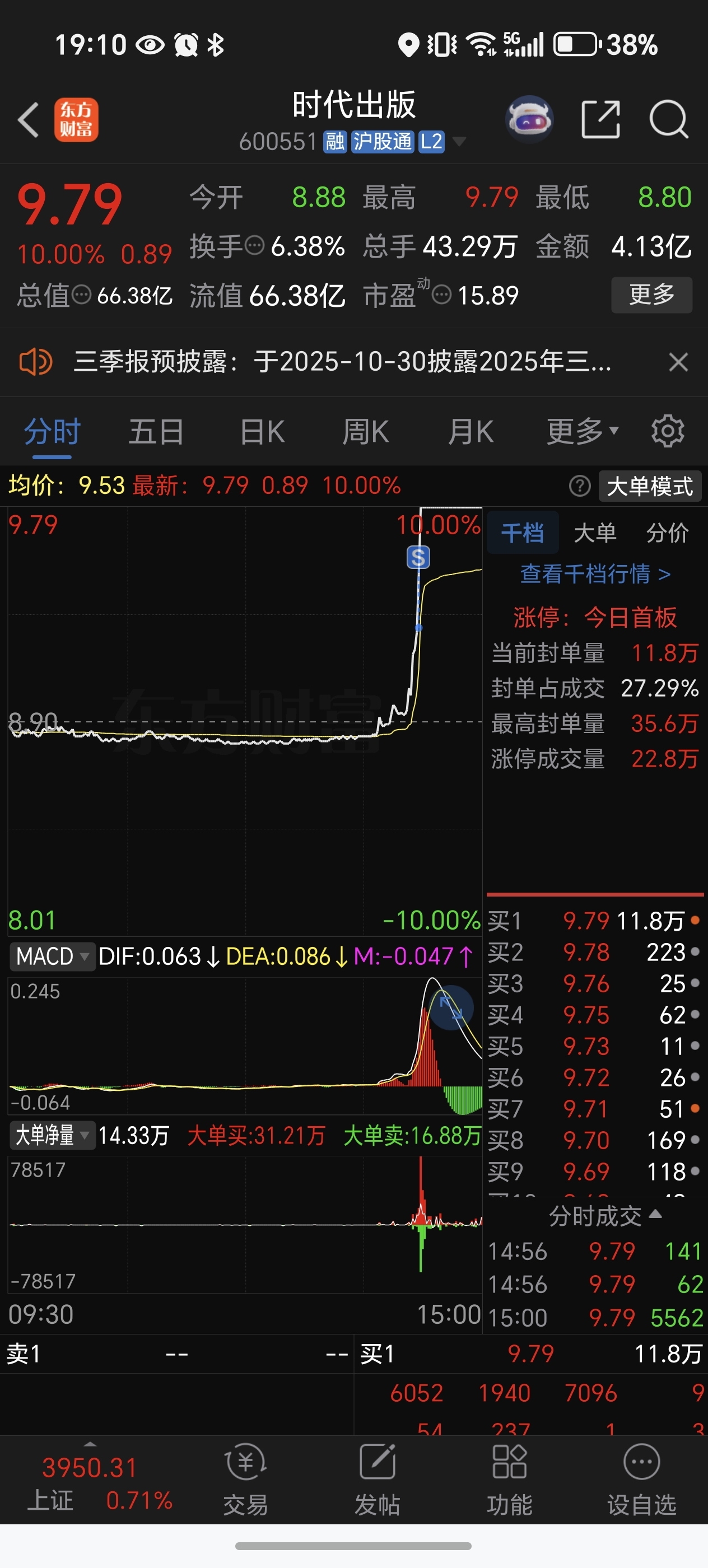 $时代出版(SH600551)$ 9.35卖飞了1/3