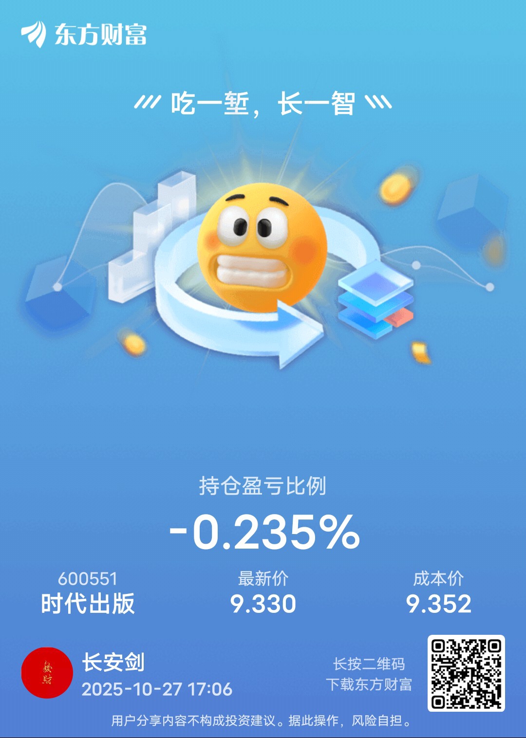 $时代出版(SH600551)$  融资满仓买了9825手,明天估计十厘米上涨,能否赚一套亚运村大别墅