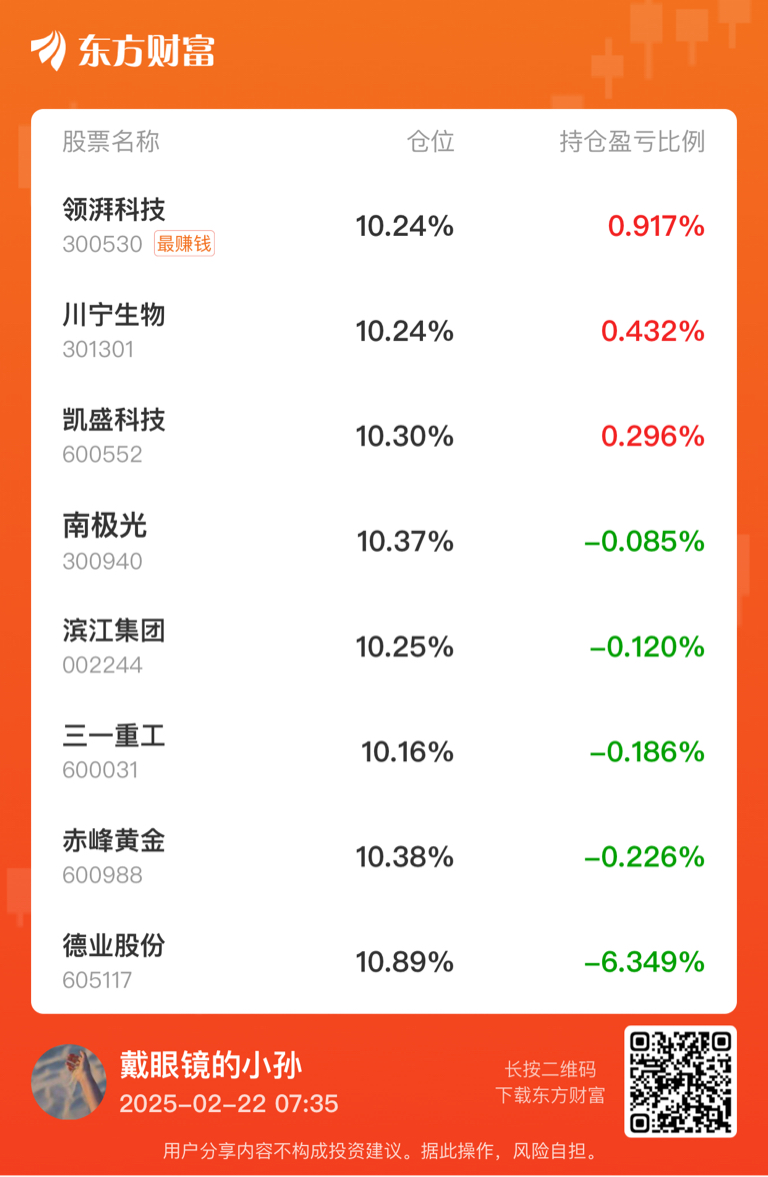 温馨提示: 1.根据《证券法》规定,禁止编造、传播虚假信息或者误导性信息,扰乱证券市场;2.用户在本社区发表的所有资料、言论等仅代表个人观点,与本网站立场无关,不对您构成任何投资建议。用户应基于自己的独立判断,自行决定证券投资并承担相应风险。《东方财富社区管理规定》