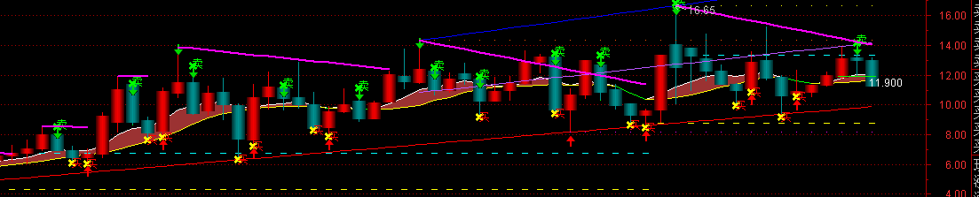 从周月线看低点抬高,以24年9月16.65高点逐步降低逐步收敛,不知还要几波多久