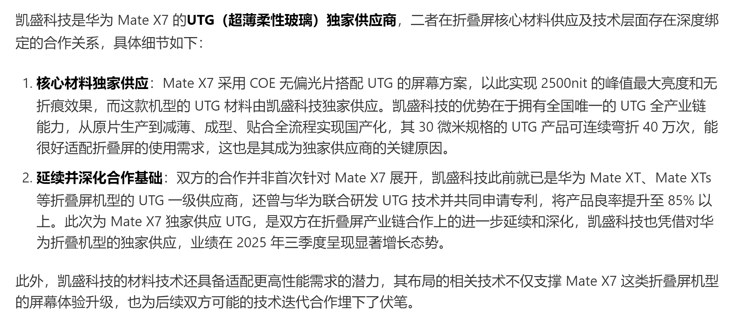 余承东公布华为Mate X7真机!凯盛科技照样跌!
