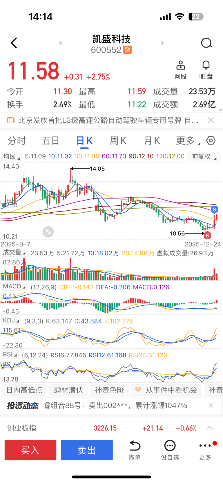 $凯盛科技(SH600552)$ 感觉有人看到我的操作