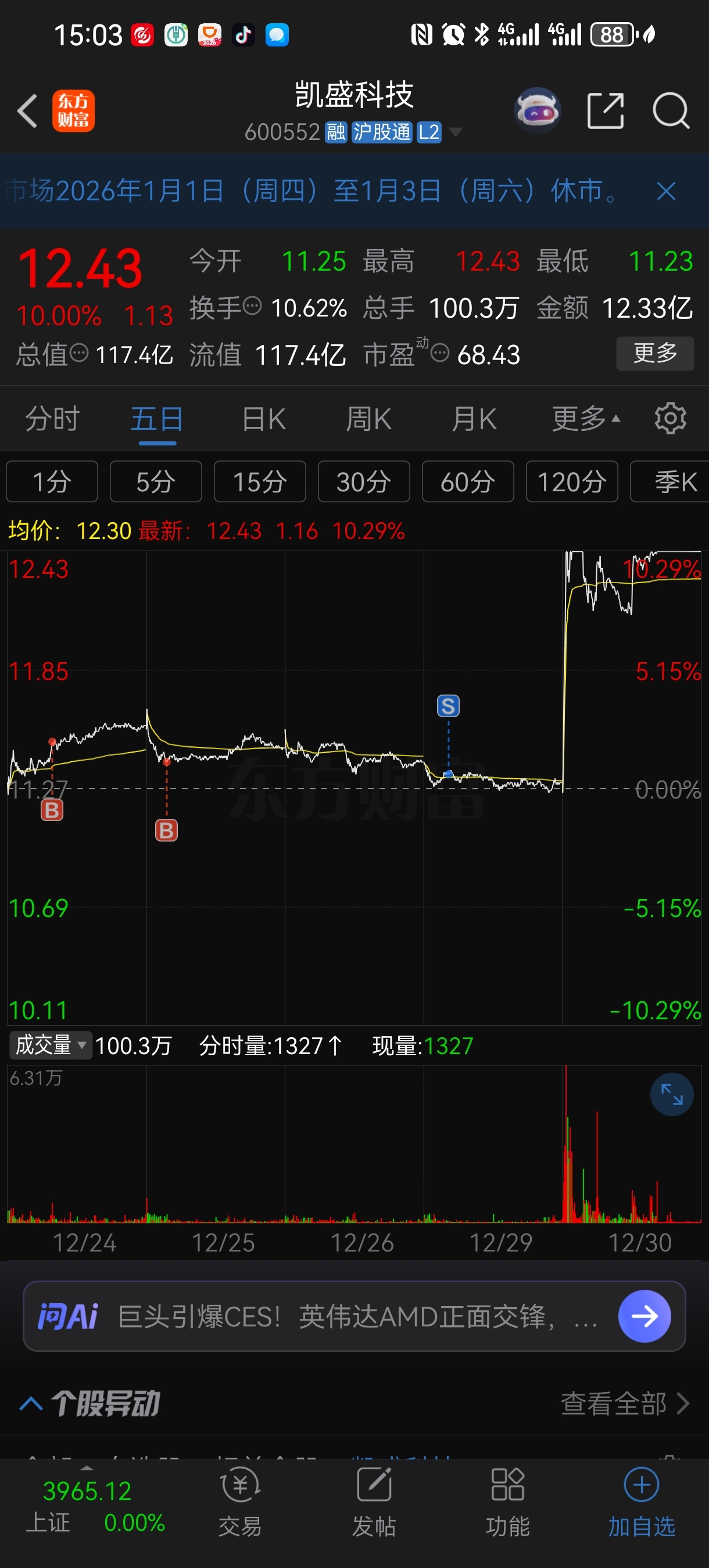 $凯盛科技(SH600552)$ 神操作了