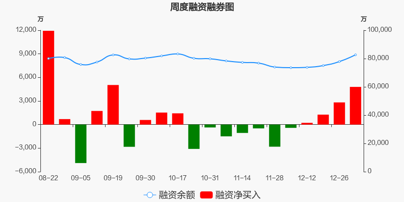 凯盛科技本周(2025/12/29-2025/12/31)累计涨幅达8.77%,截至12月31日最新股价报收12.40元。从增量上来看,12月29日至12月31日融资买入交易规模2.97亿元,融资偿还规模2.49亿元,期内融资净买入4794.23万元。从存量上来看,截止1月4日,凯盛科技融资融券余额8.29亿元,其中融资余额规模8.27亿元,融券余额规模194.93万元。