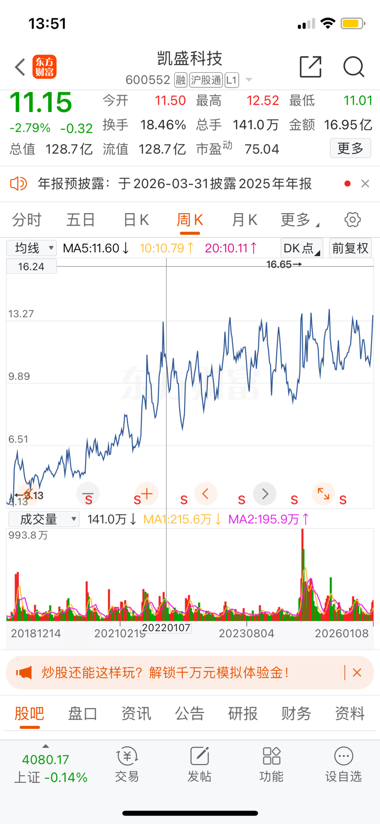 $凯盛科技(SH600552)$ 4年了,这次要挣脱地心引力冲高