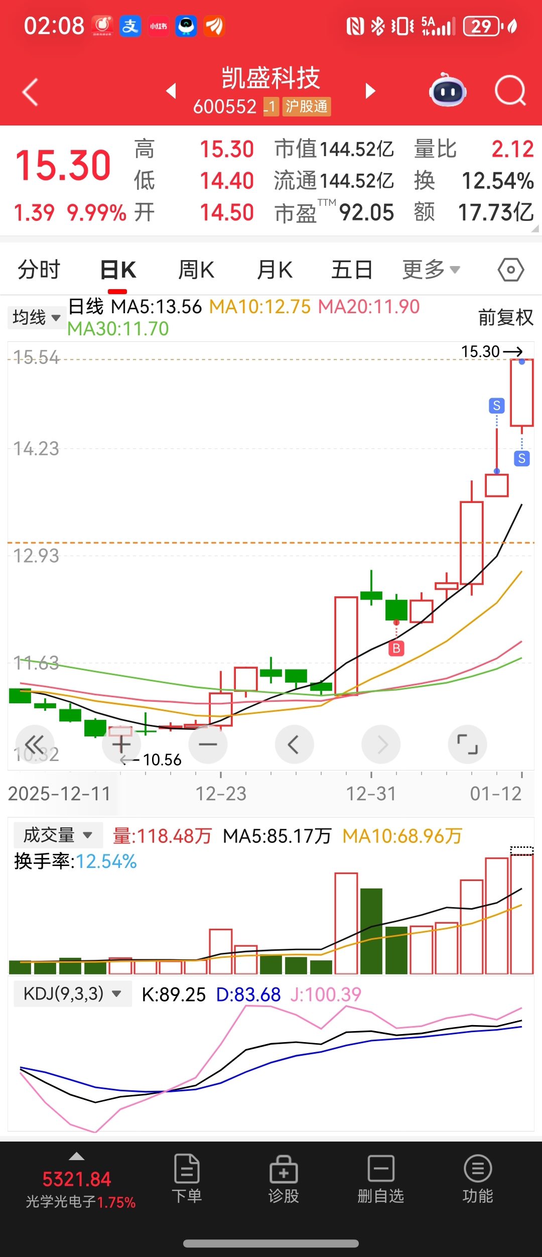 $凯盛科技(SH600552)$ 小一把,12.15买入,周五和今天清空。