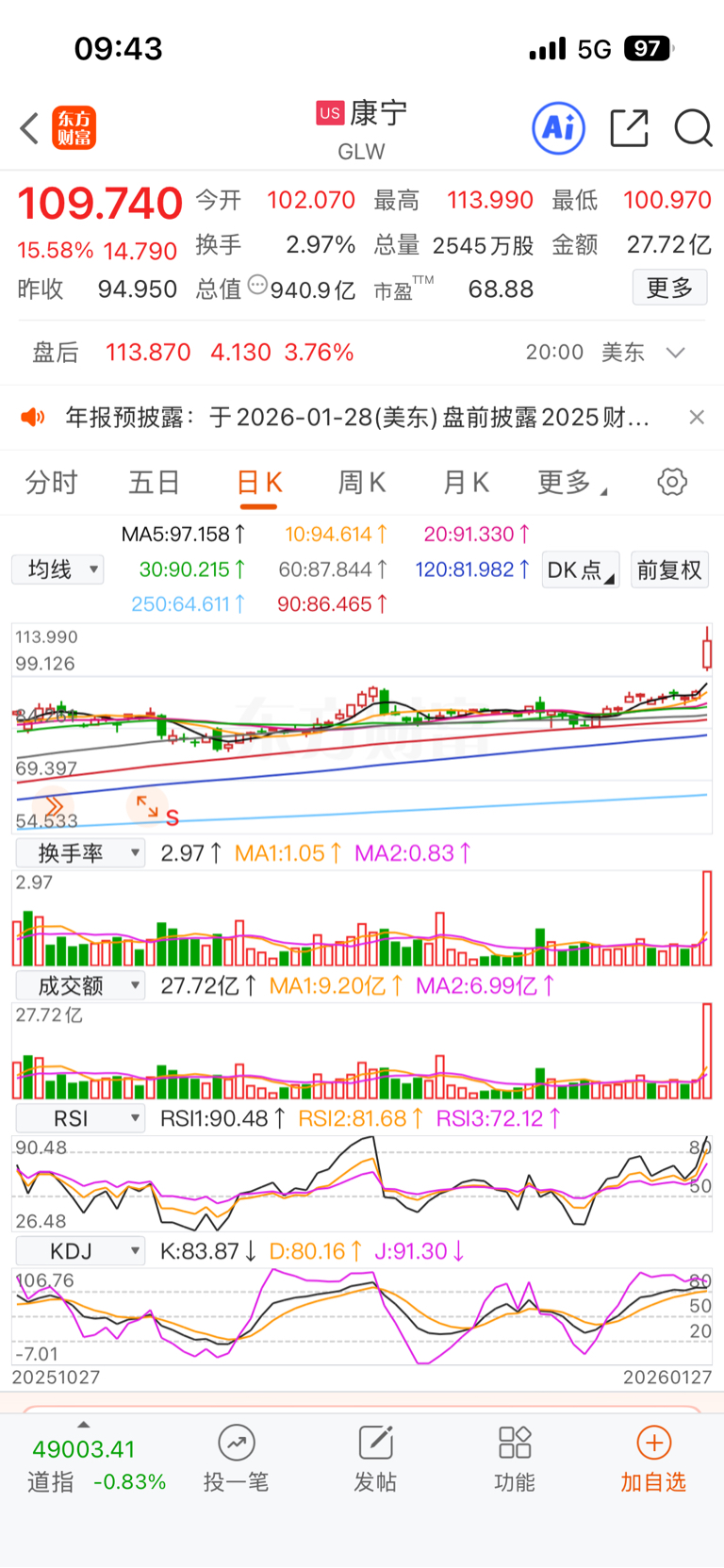美股:康宁大涨。你比它更有潜力啊