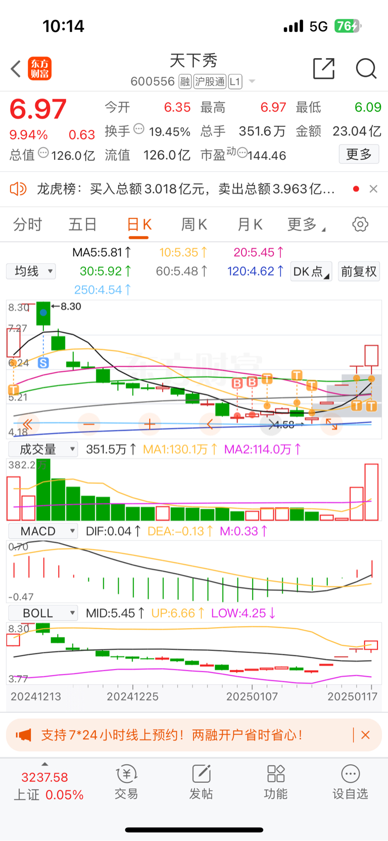 $天下秀(SH600556)$ 换手卡位遥望,突破8块3还是很有希望的,冲刺