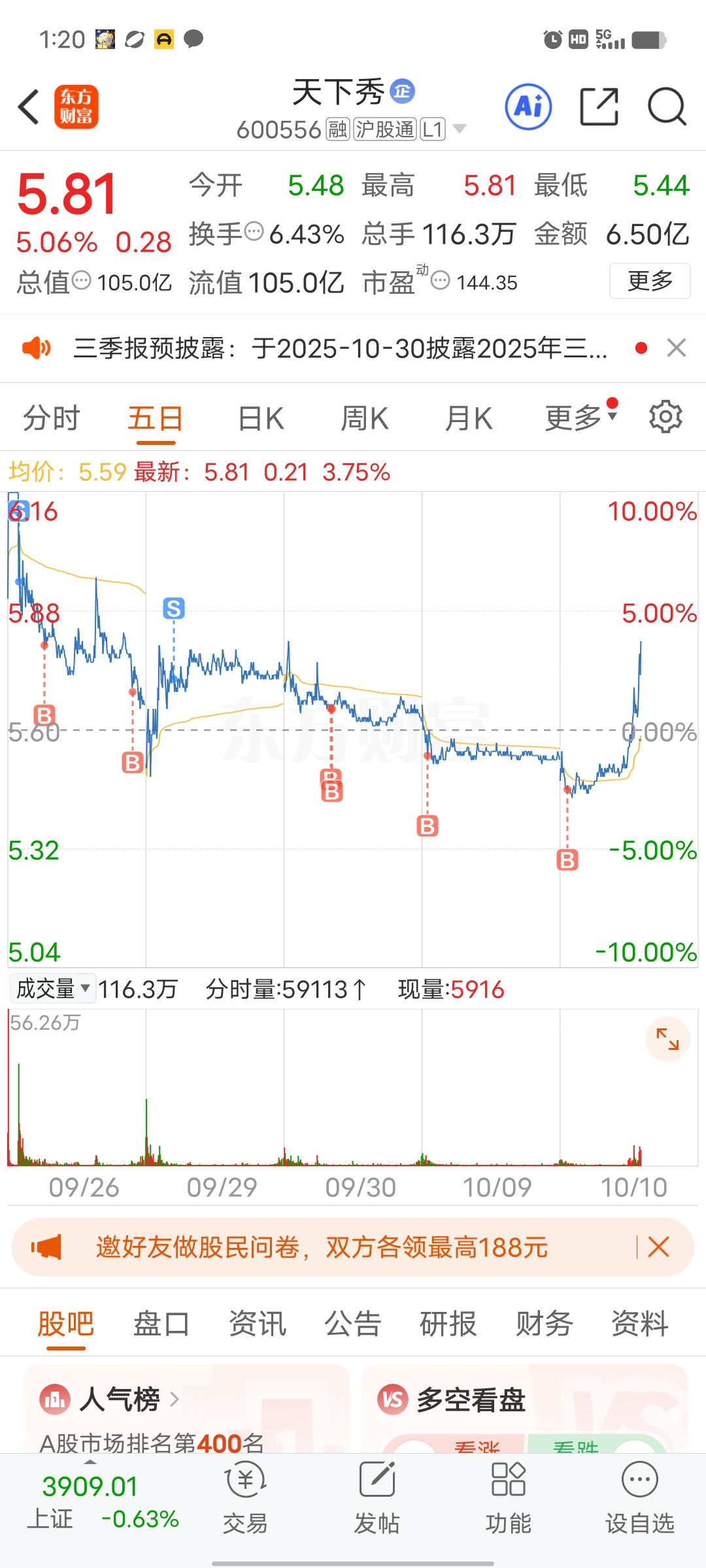 $天下秀(SH600556)$ #实盘记录# 还得是我秀儿才给力