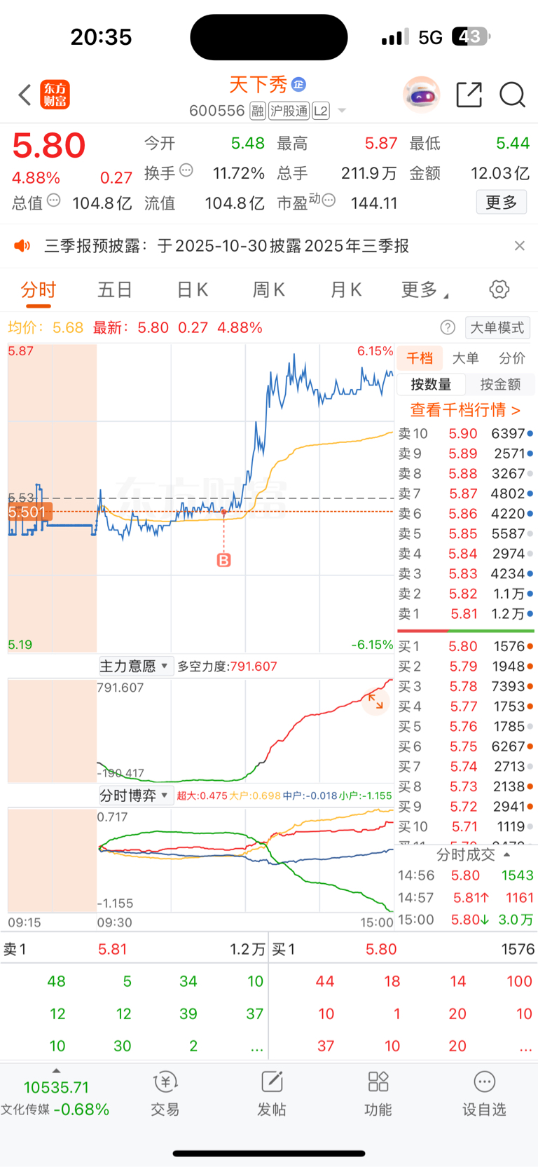 $天下秀(SH600556)$ 地产、券商、保险、稀土护盘,其余大跌