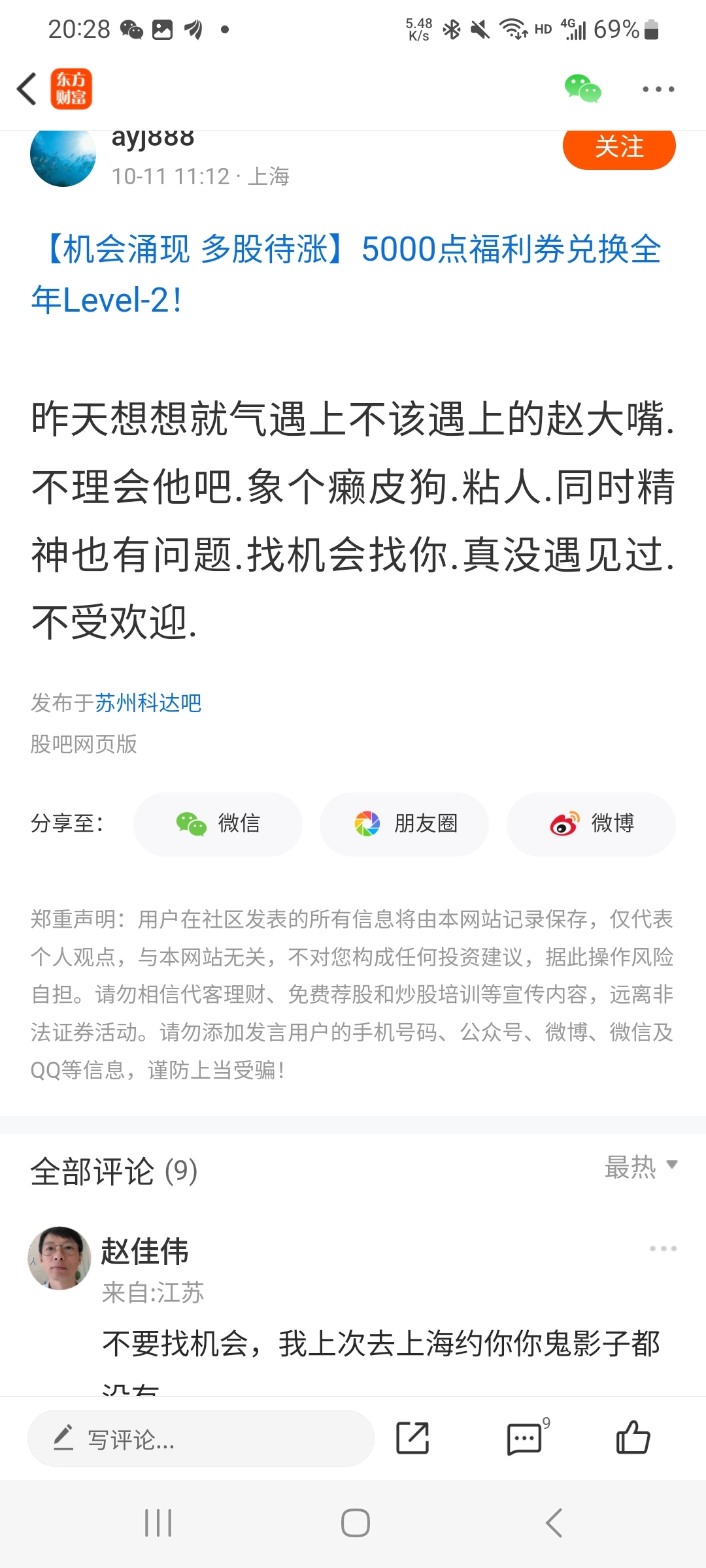 温馨提示: 1.根据《证券法》规定,禁止编造、传播虚假信息或者误导性信息,扰乱证券市场;2.用户在本社区发表的所有资料、言论等仅代表个人观点,与本网站立场无关,不对您构成任何投资建议。用户应基于自己的独立判断,自行决定证券投资并承担相应风险。《东方财富社区管理规定》