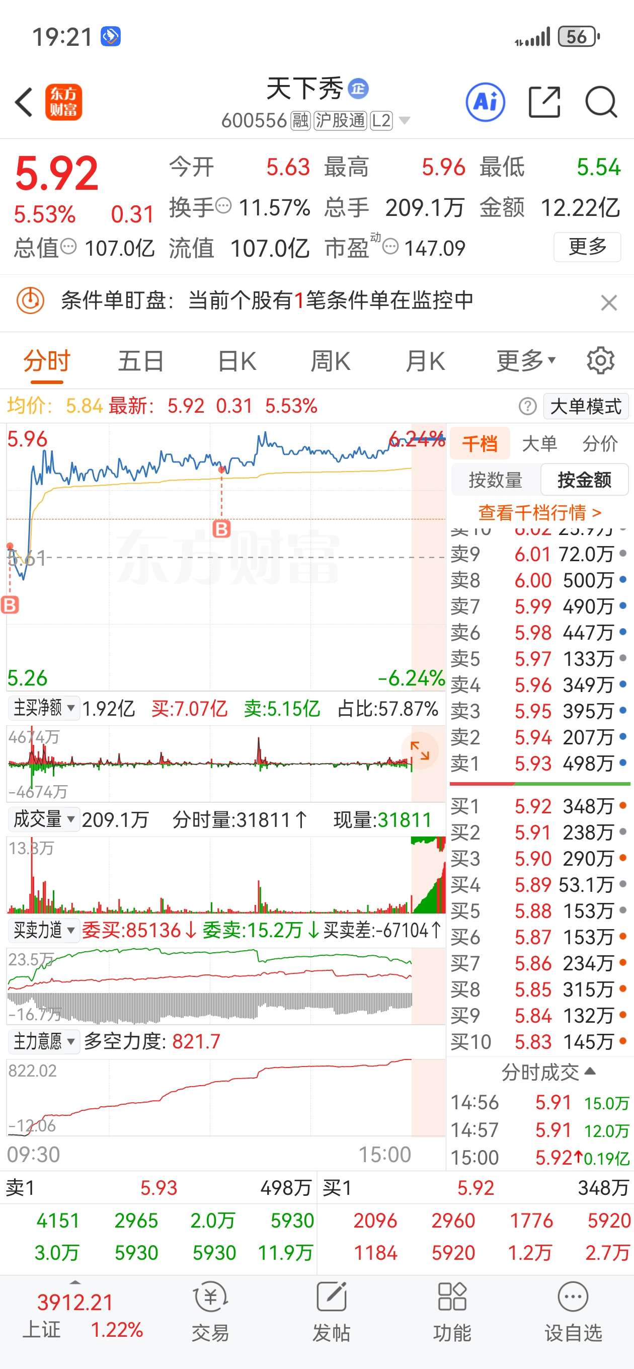 $天下秀(SH600556)$  这里是上车机会,今天放量突破,下午找机会上车,