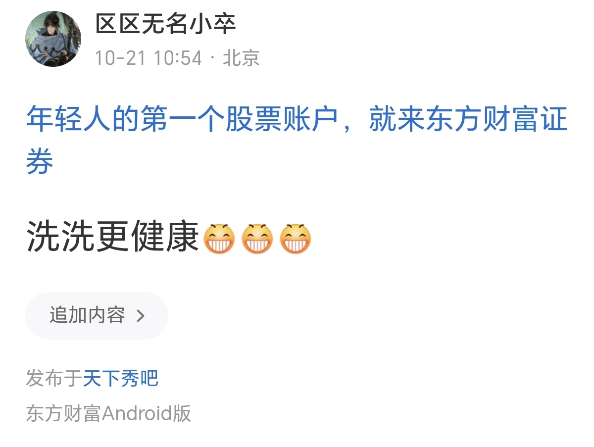 温馨提示: 1.根据《证券法》规定,禁止编造、传播虚假信息或者误导性信息,扰乱证券市场;2.用户在本社区发表的所有资料、言论等仅代表个人观点,与本网站立场无关,不对您构成任何投资建议。用户应基于自己的独立判断,自行决定证券投资并承担相应风险。《东方财富社区管理规定》