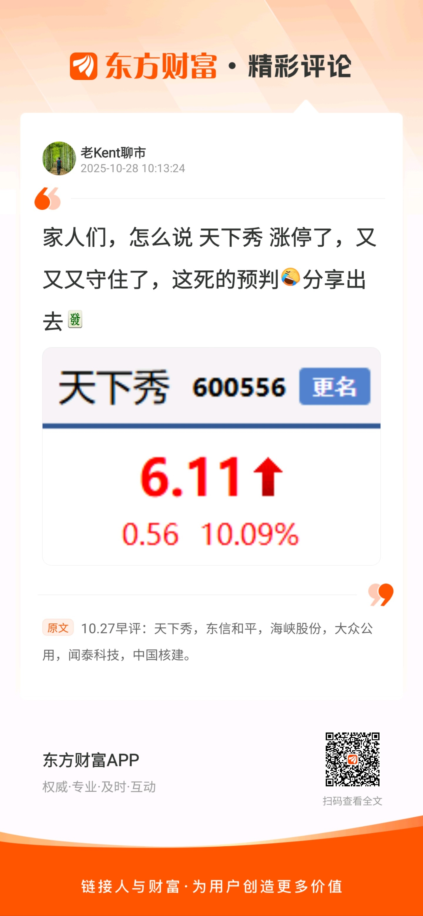 守了一个月啊家人们,我的死守是对的没错的,昨天预判了闻泰,今天到天下秀了