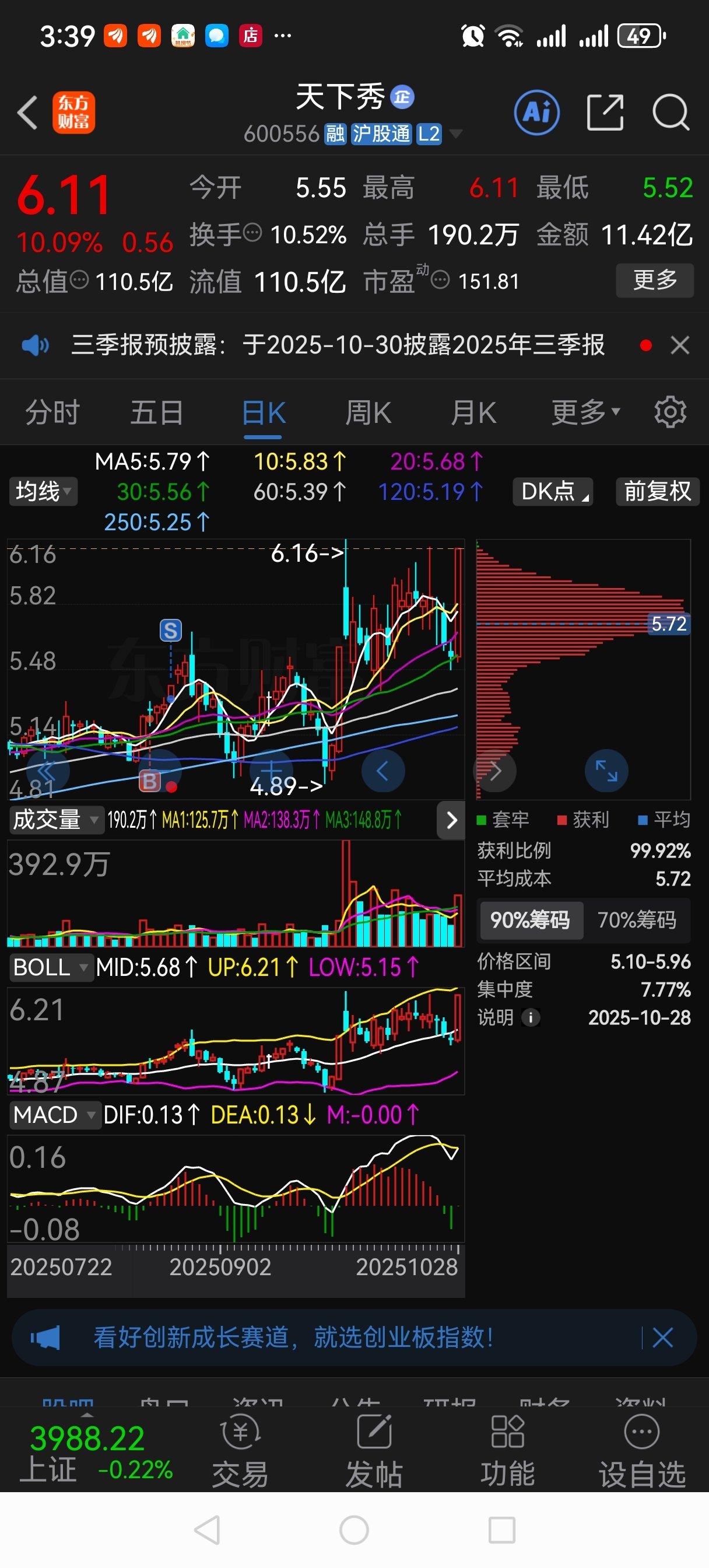 $天下秀(SH600556)$ 到11块喊我起床卖票
