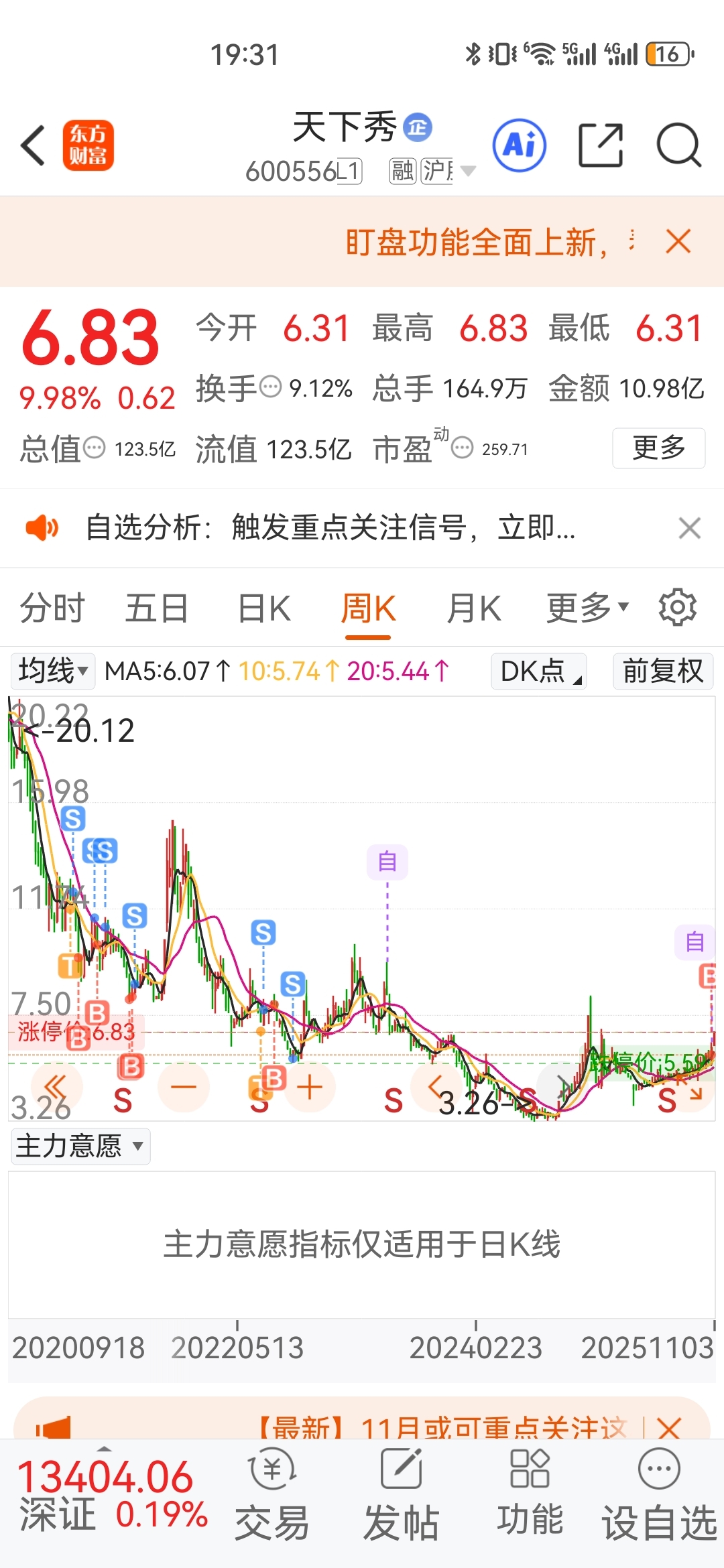 $天下秀(SH600556)$ 21年入手,成本12.5.反复做T降到9.7。哎