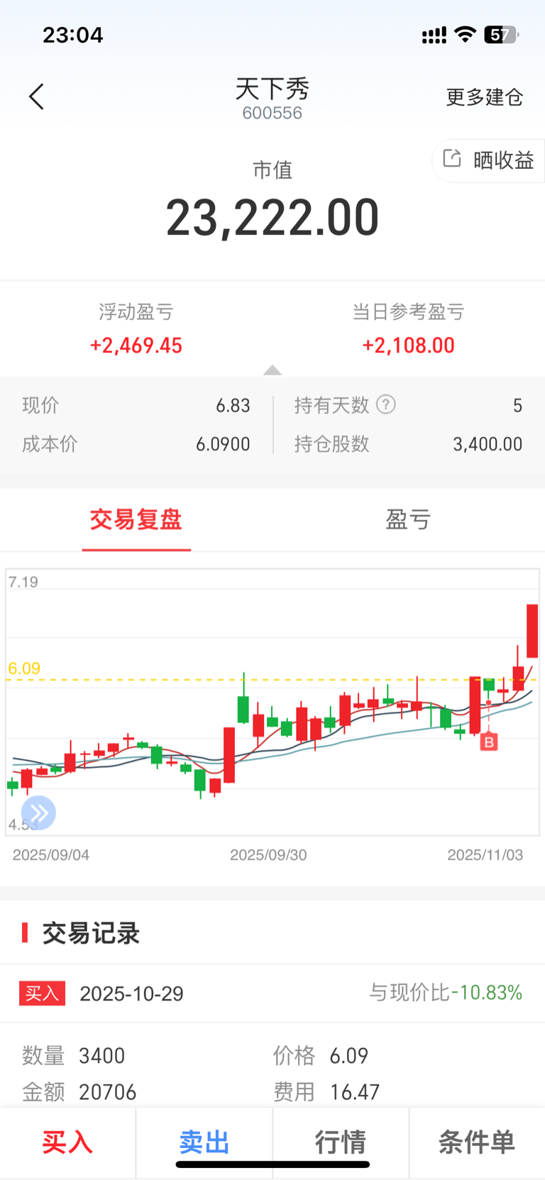 $天下秀(SH600556)$ 2014年到2023年陆陆续续亏损几百个,并欠下巨额债务,跟家人坦白之后自认为悟出了人生之道,上个月开始建仓,本金2万,开启我的实盘记录,这是我开仓之后的第一个涨停记录一下。