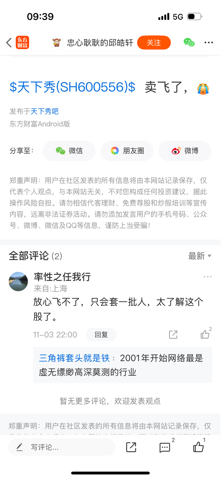 $天下秀(SH600556)$ 昨天就说了太了解这个股的德性了,不可能起飞的,只会让你们挂在山顶上。