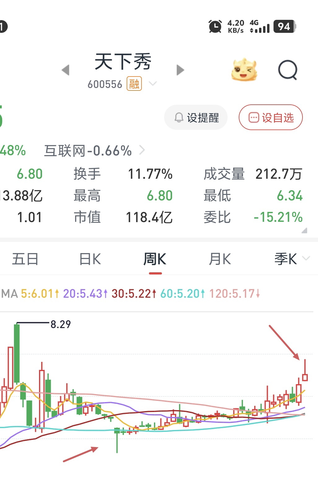 $天下秀(SH600556)$ 周线4月11和周线11月06形成前后对应!恶庄人才,不知不觉中套入死胡同。