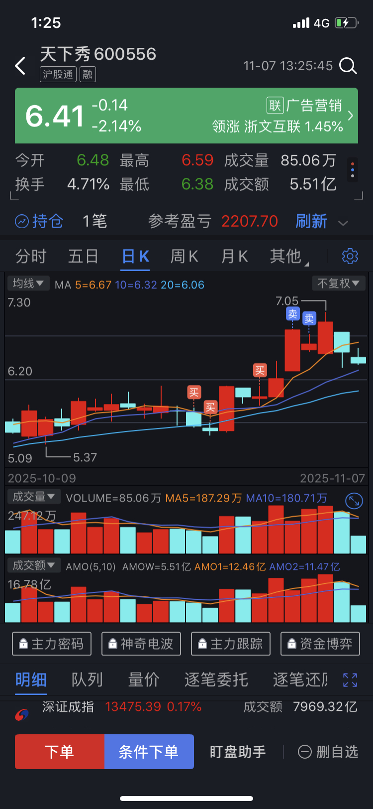 $天下秀(SH600556)$ 减了3/5仓位,留下2/5,估计卖飞了