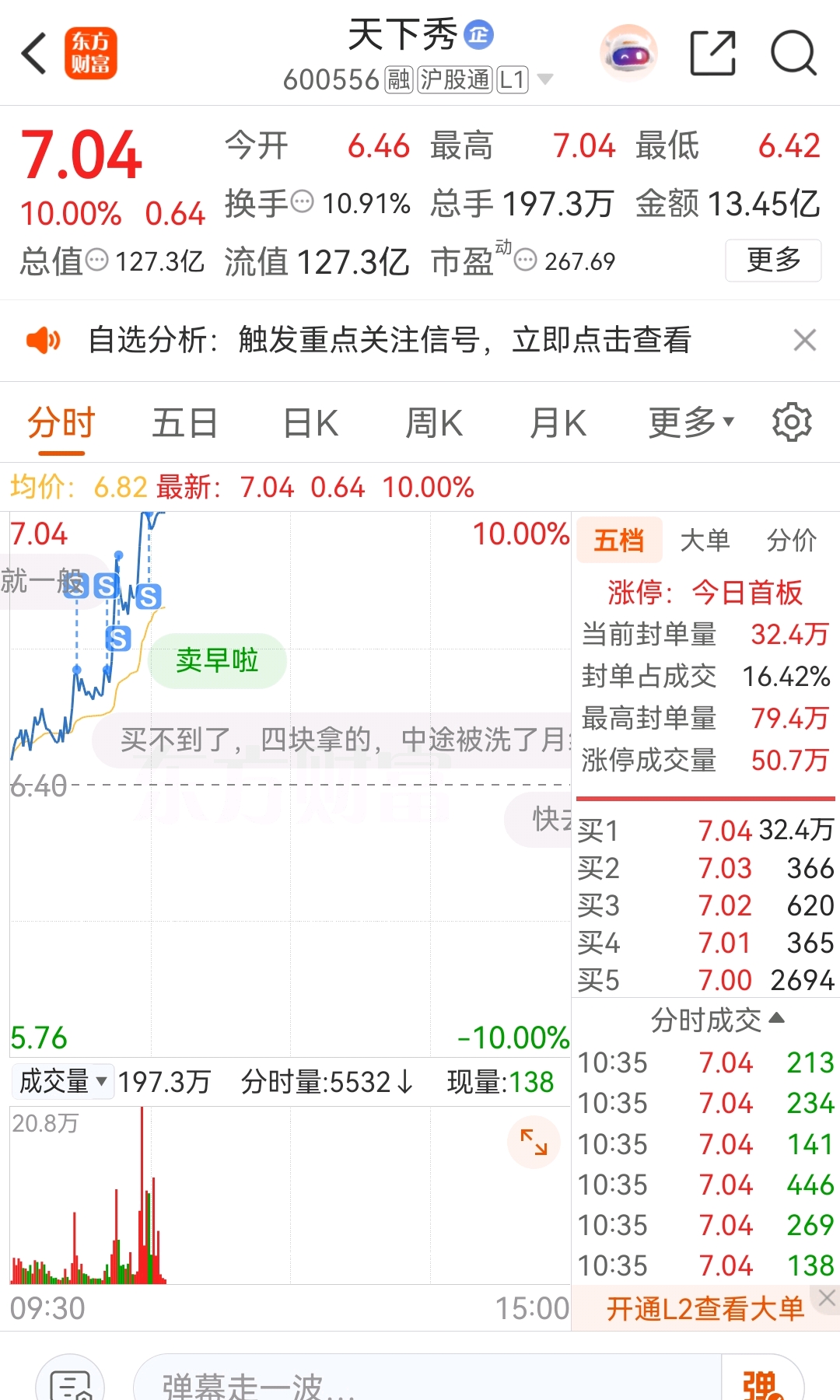 $天下秀(SH600556)$ 我清仓走了,烂板一个,诱多套散户,明天一个低开全
