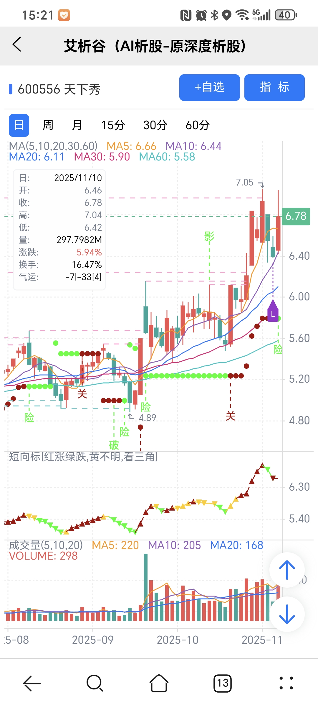 红绿小圆点是艾析谷的量化指标-超级短趋线,是趋势跟踪+突破类的量化指标,完全免费。