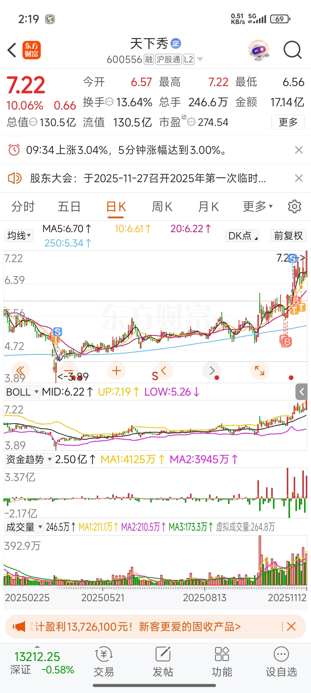 去年天下秀跟着遥望科技涨的时候发现的天下秀,今年4.7贸易制裁,当时4块钱我还买