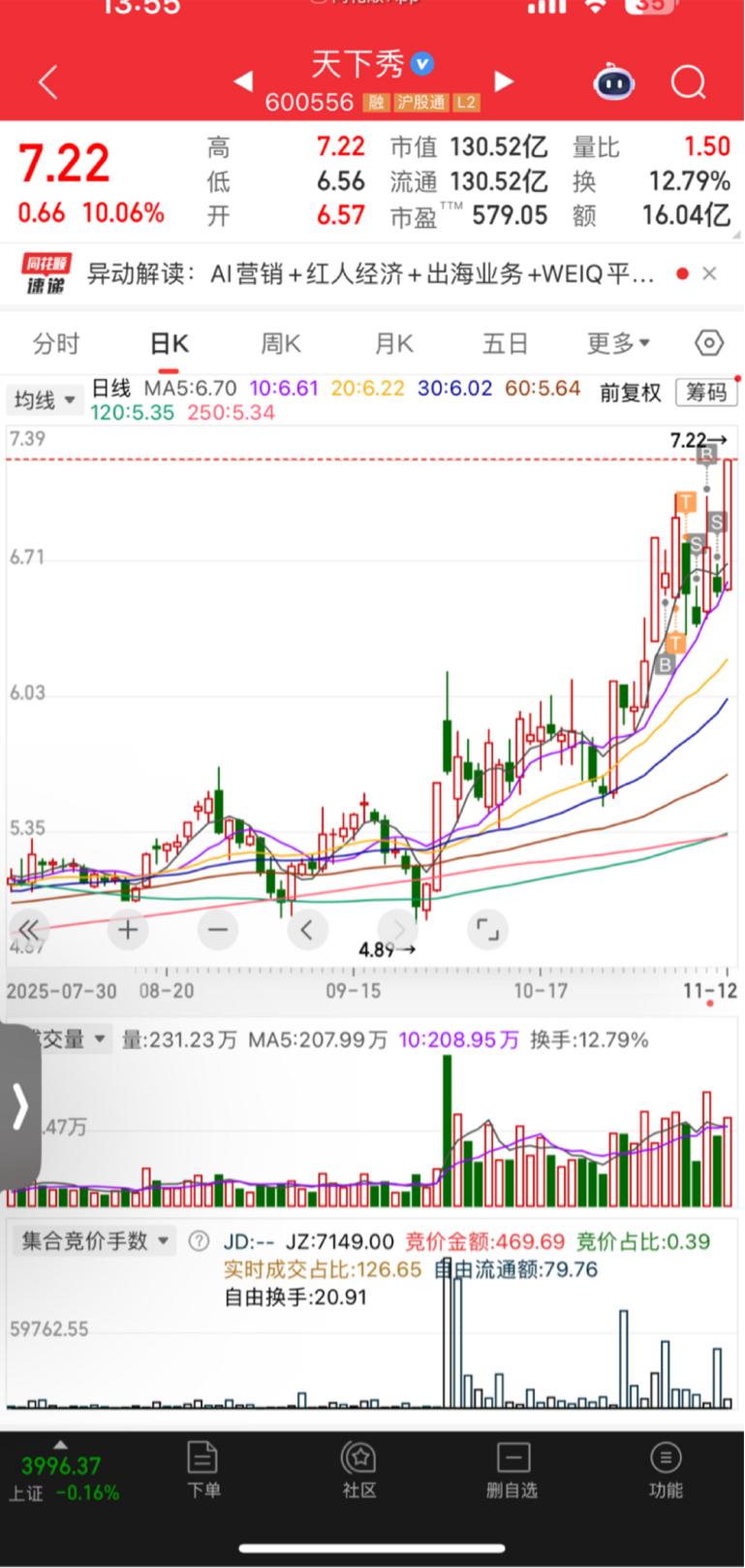 $天下秀(SH600556)$ 4000点这个位置做的太难受了 上又上不去 下又下不来,你卖他就涨 ,你追他就跌.你要一直拿着好吗一直跌 。今天的3980如果后面在跌破 就休息了 这个位置太难做 折麽人,按道理这个走势一定会破前高的 明天看看有没有机会吧 如果在冲不上去仓位降到5成以下了 破3980直接2成玩玩短线 方向上 也是轮动 个别股抱团 但是已经是 尾声了 看看首板吧
