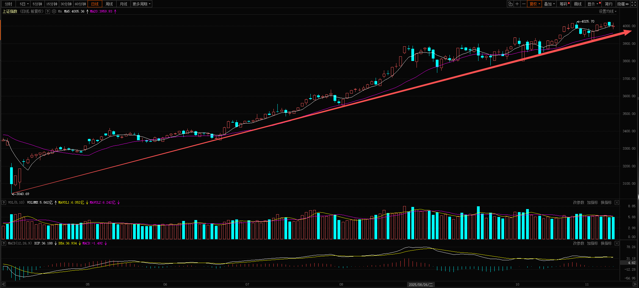 先说指数吗,指数今天依旧全天震荡,收盘微跌0.07,但成交额较上个交易日缩量180亿,已经连续三天都是缩量了,表明4000点是一个重要的心理和技术支撑位,多空双方在此存在分歧 。