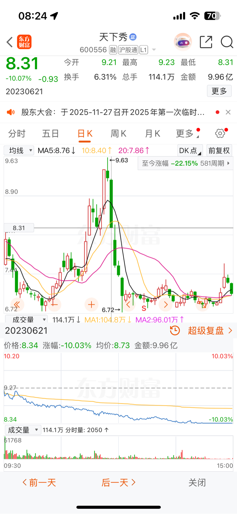 $天下秀(SH600556)$ 不会这样走吧,开盘没有拉升动作立马跑