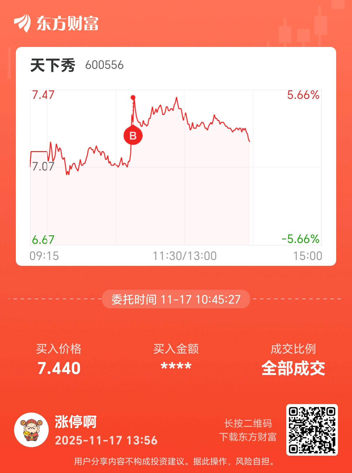 $天下秀(SH600556)$ 别跌了别跌了,今天绿的慌
