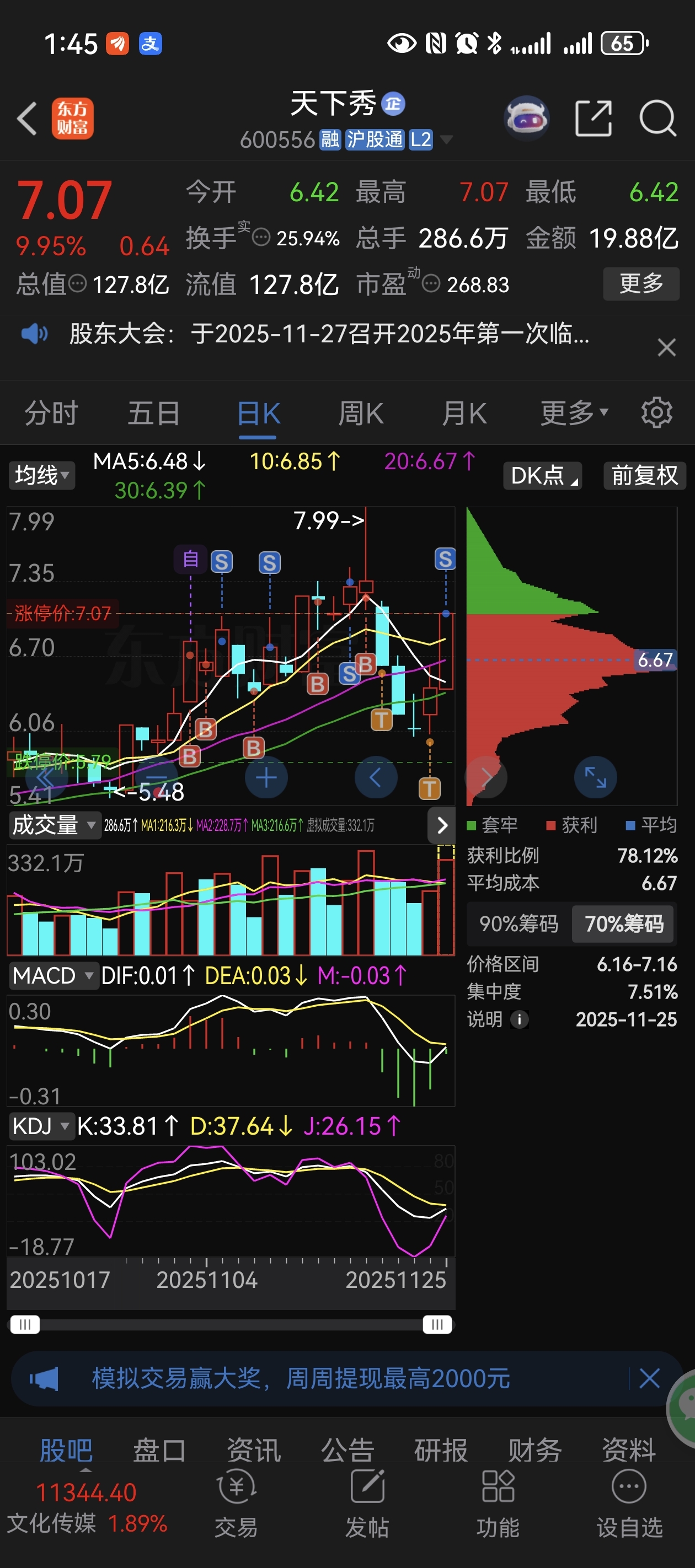$天下秀(SH600556)$ 做了快半个月,勉强16个点,挣不到钱溜了。