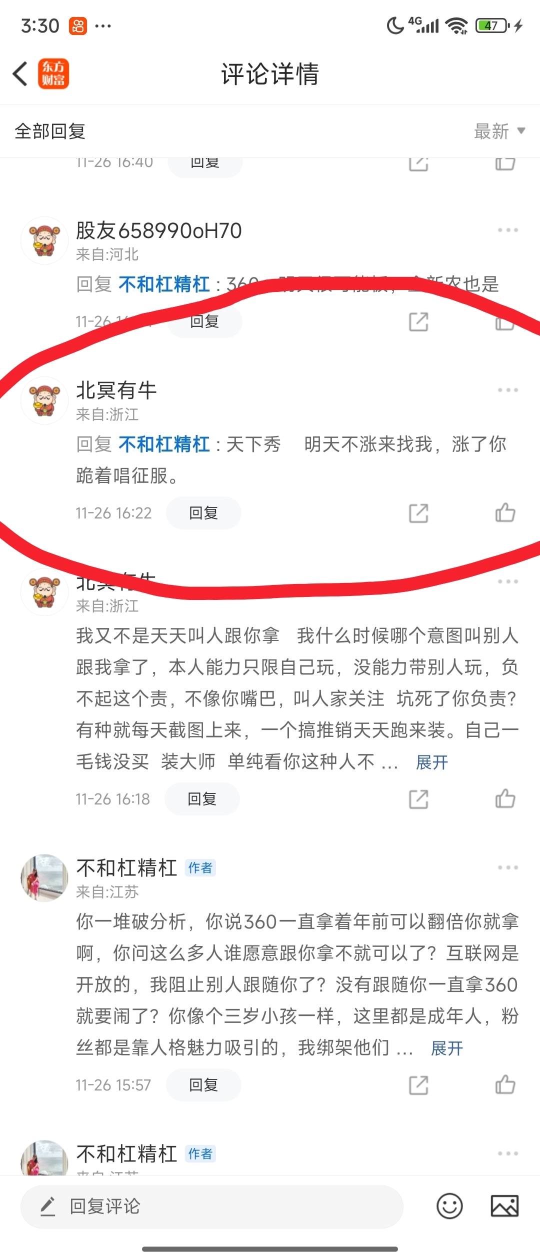 这个小黑粉,你给我出来,是不是要啪啪打你脸?一天你觉得自己牛逼轰轰的,成绩出来了。你说的股票跌了3.9个点,你是不是要自己打脸?