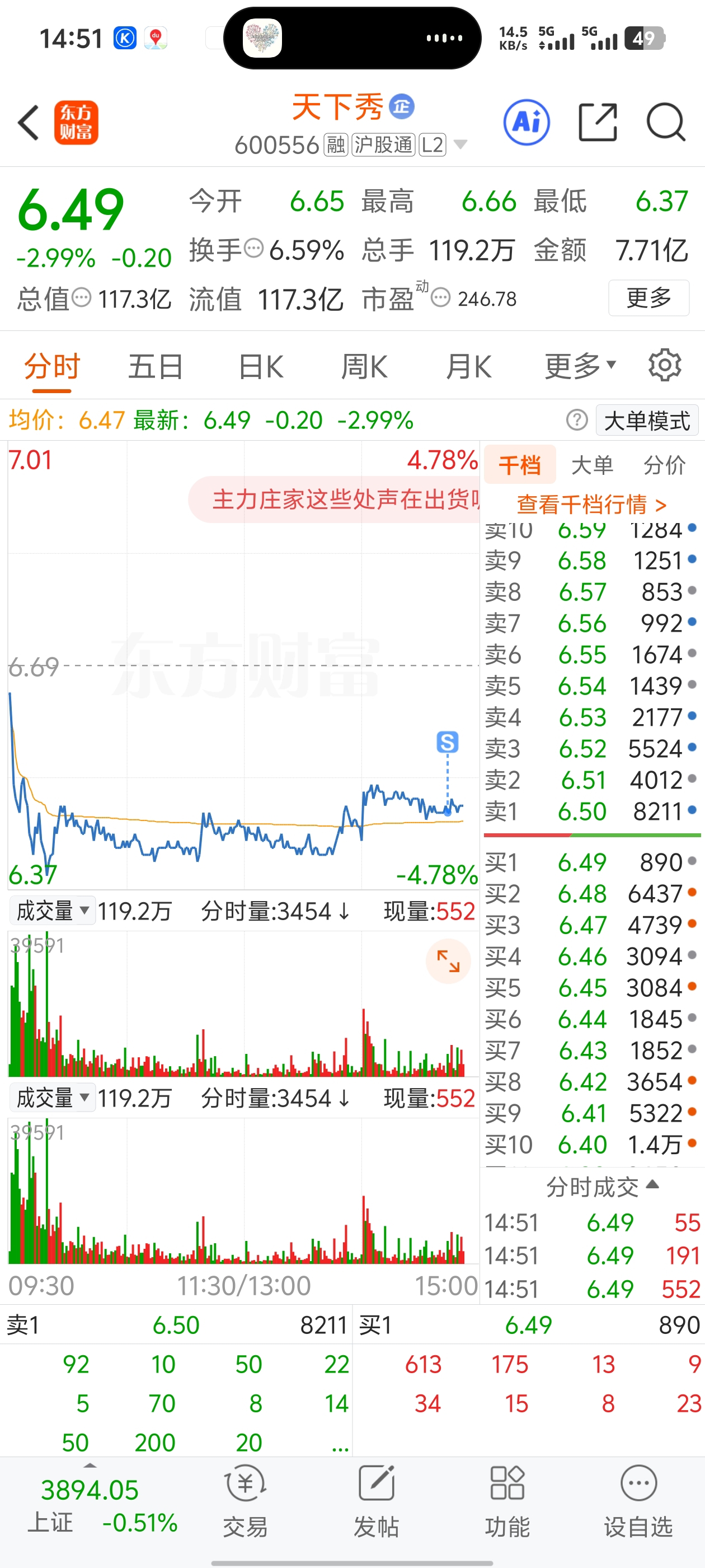 $天下秀(SH600556)$ 暂时抗不住了,等五块再回来报仇