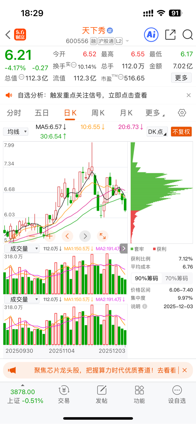 $天下秀(SH600556)$ 筹码峰发疯了 哈哈哈
