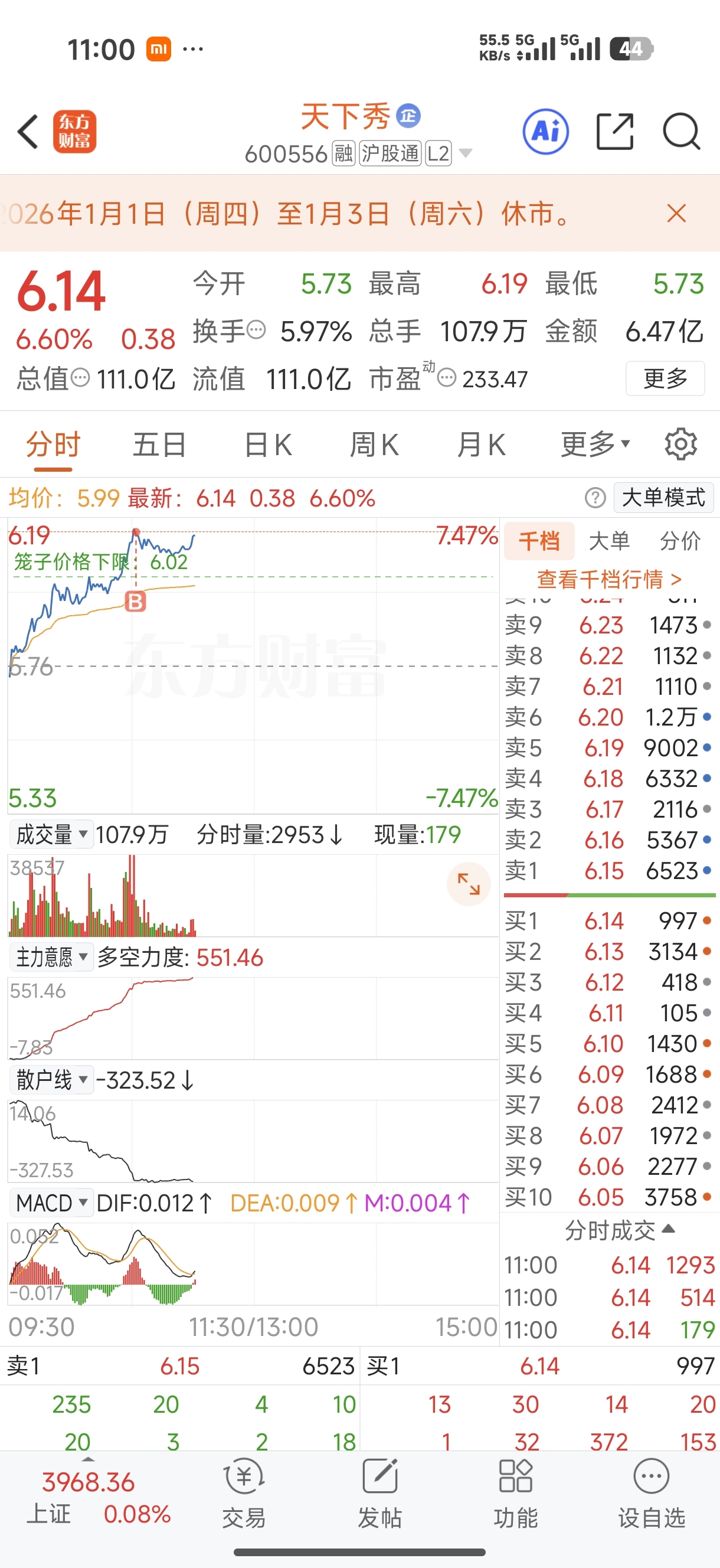 $天下秀(SH600556)$ 第一次打板,主力好心求放过,再也不敢了