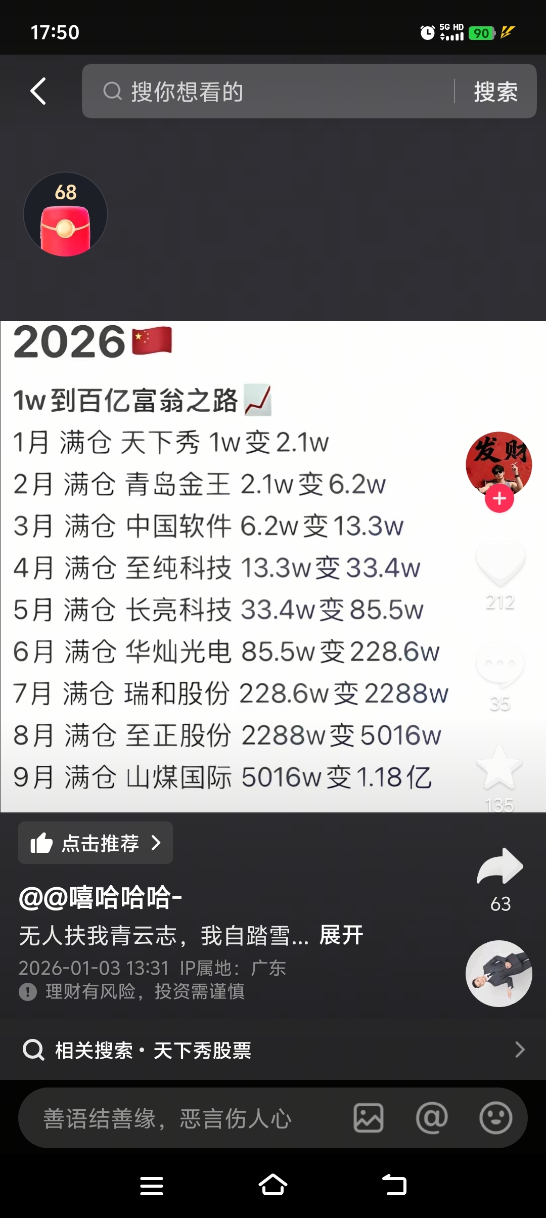 温馨提示: 1.根据《证券法》规定,禁止编造、传播虚假信息或者误导性信息,扰乱证券市场;2.用户在本社区发表的所有资料、言论等仅代表个人观点,与本网站立场无关,不对您构成任何投资建议。用户应基于自己的独立判断,自行决定证券投资并承担相应风险。《东方财富社区管理规定》